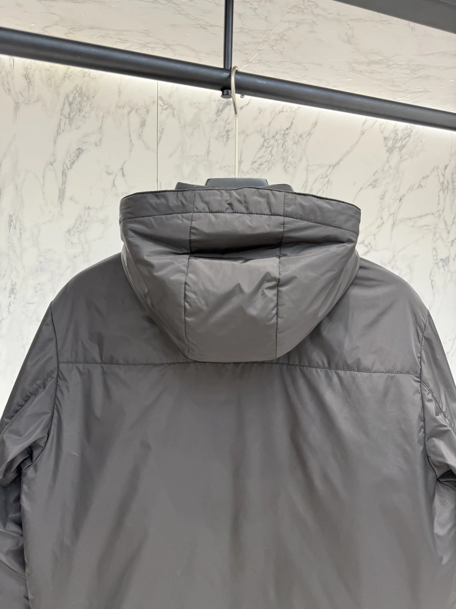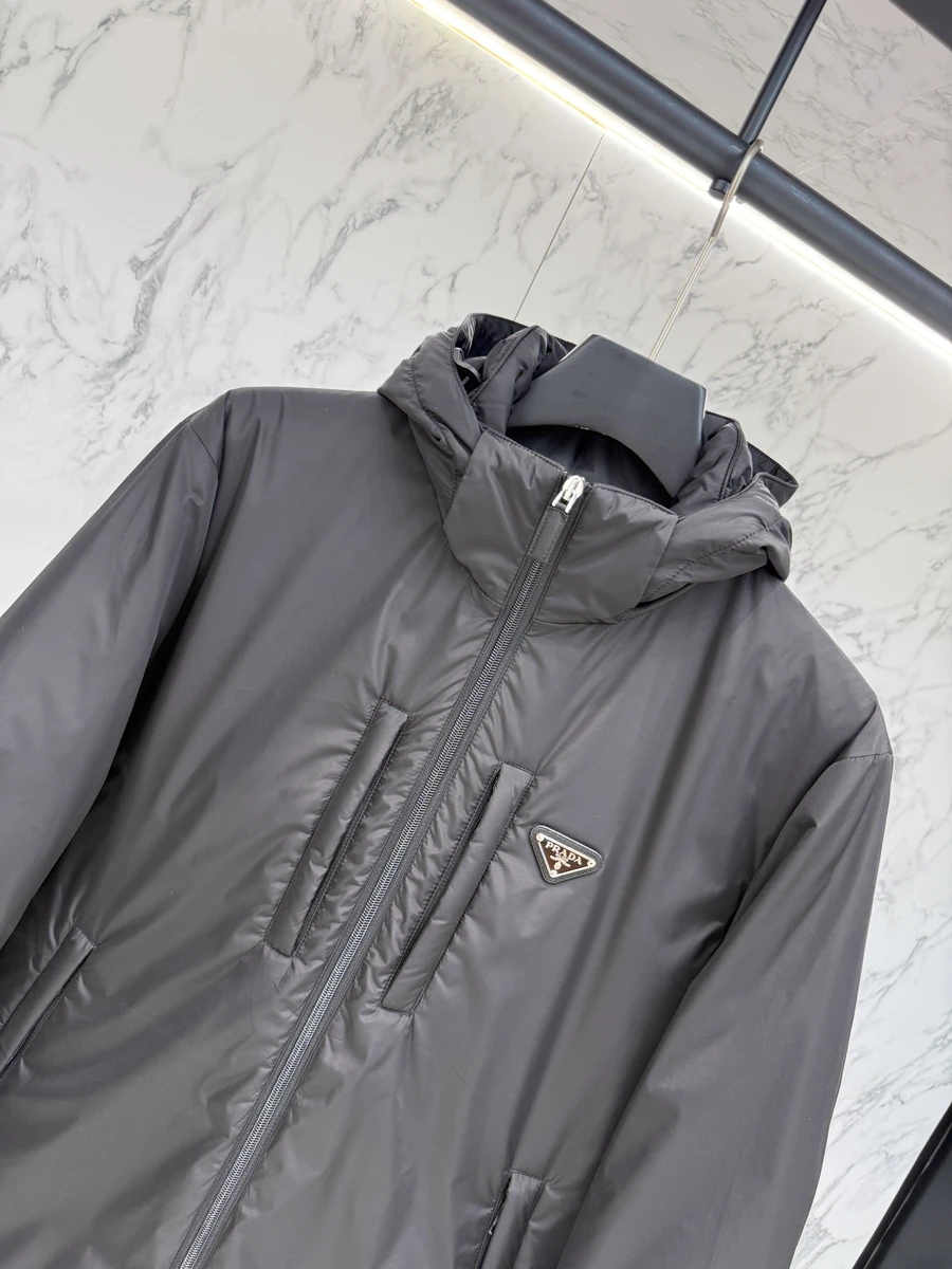 Cette veste Prada est un classique revisité avec des matériaux modernes et un design intemporel. Fabriquée en nylon de haute qualité avec un rembourrage en duvet de canard blanc, elle offre une chaleur exceptionnelle tout en restant légère et confortable. Le logo triangulaire en métal émaillé sur la poitrine ajoute une touche de sophistication discrète. Dotée d’une fermeture à glissière sur le devant et de poches pratiques, cette veste est idéale pour un usage quotidien et peut être portée dans un style élégant ou décontracté. La couleur bleu marine profonde et élégante en fait une pièce polyvalente qui s’adapte à toutes les occasions.